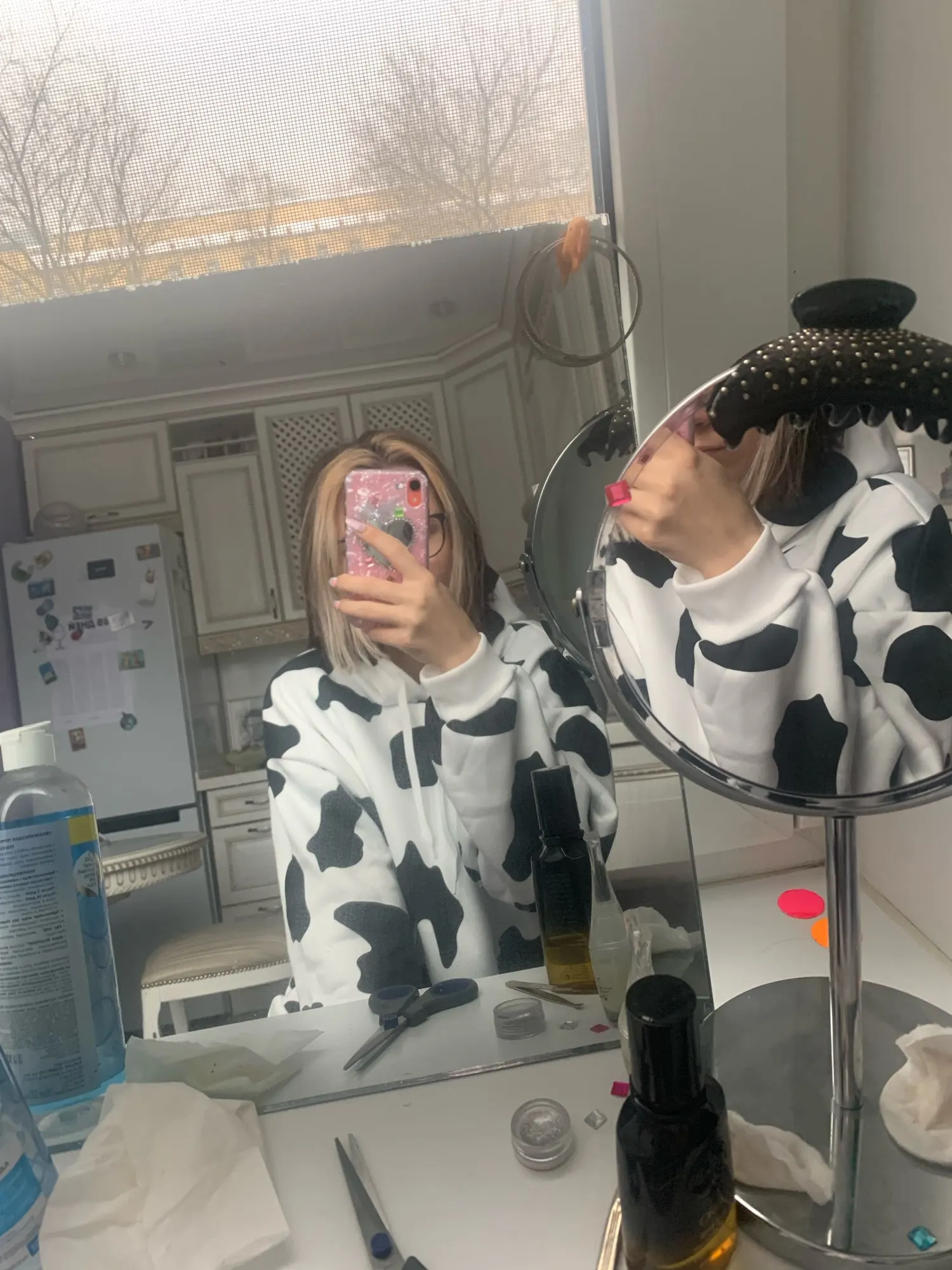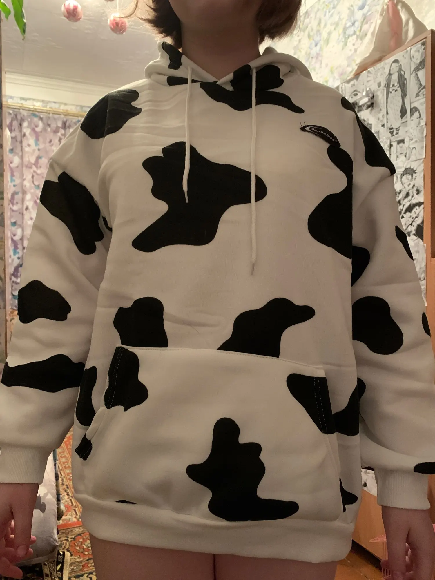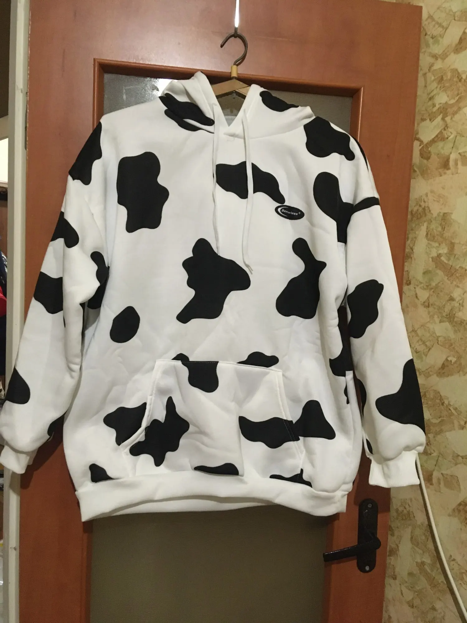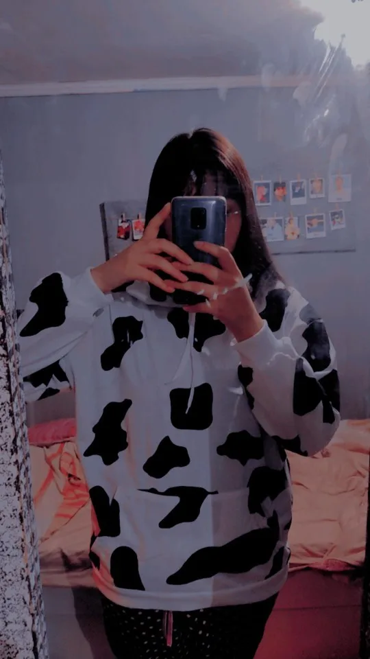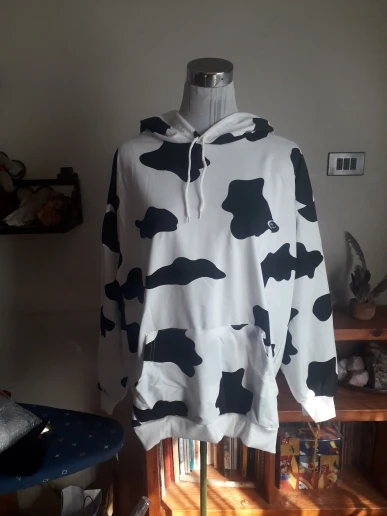 Sudadera holgada informal estampada para mujer, con estampado de vaca, ropa para Parte Superior Femenina, de otoño e invierno, con bolsillo cálido, 2022