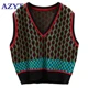 Suéter con rombos Vintage para mujer, Chaleco de punto sin mangas, elegante, otoño e invierno, 2022