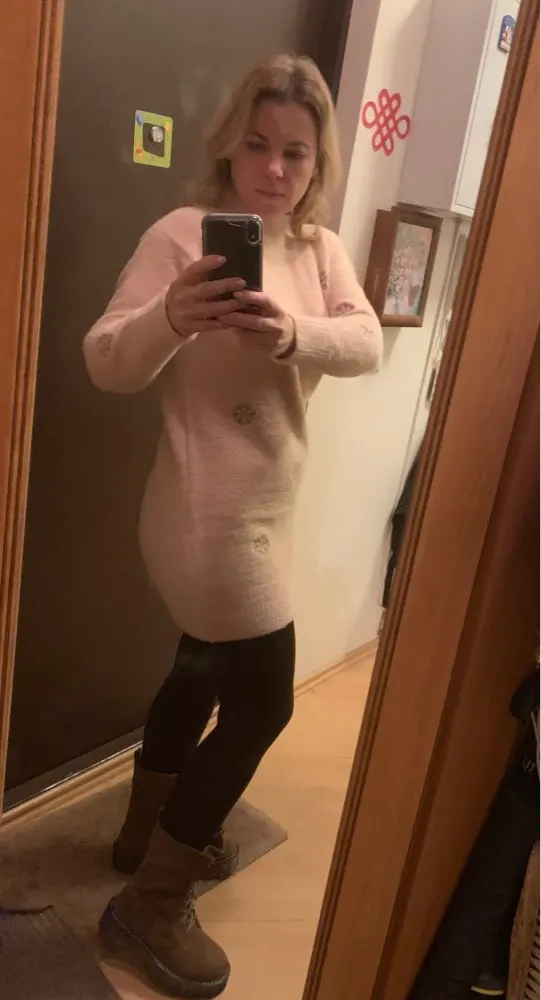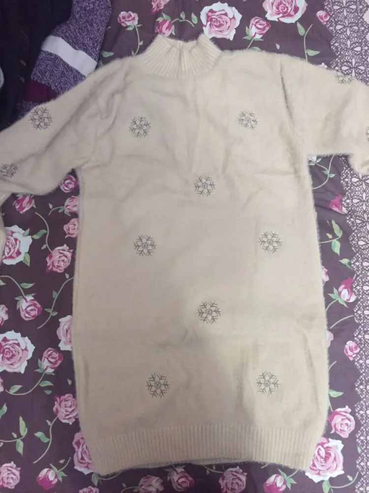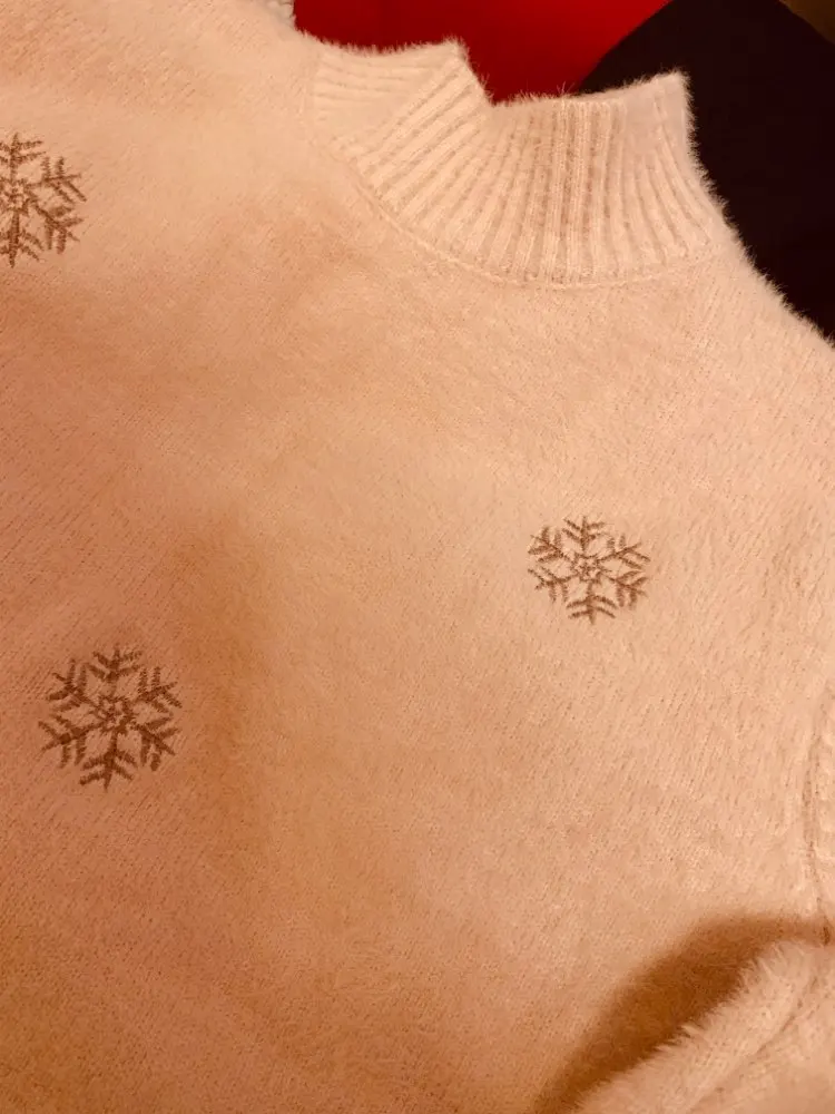 Suéter de punto de imitación de visón y Cachemira para mujer, suéter de cuello alto Medio, vestido blanco, holgado, talla grande