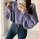 Suéteres de punto para mujer, camisa tipo alas de murciélago con cuello de barco, corto, de talla grande, otoño e invierno, novedad