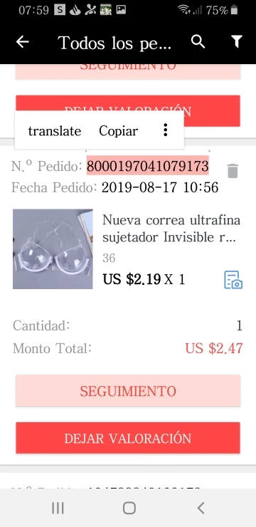 Valoración de Aliexpress: