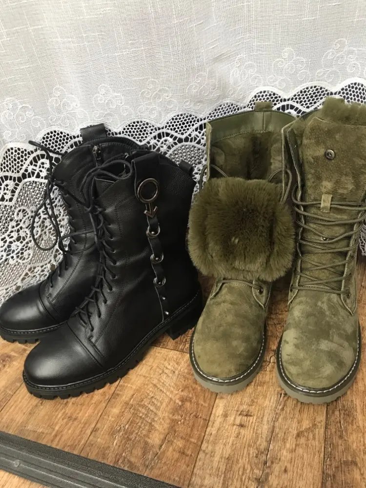 SWYIVY-Botas de nieve de piel de cerdo para mujer, zapatos de cuña para mujer, botas de cuero para mujer, botines de punta redonda para costura 2022