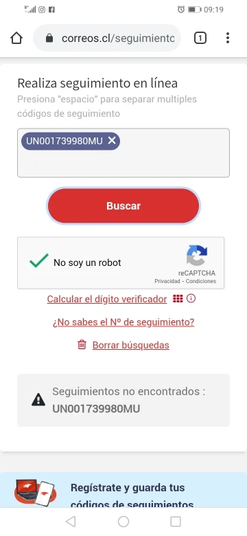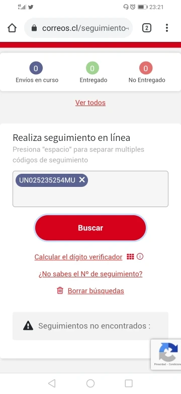 Nunca llego Numero de envío no válido en correos de chile No hay forma de saber del envio