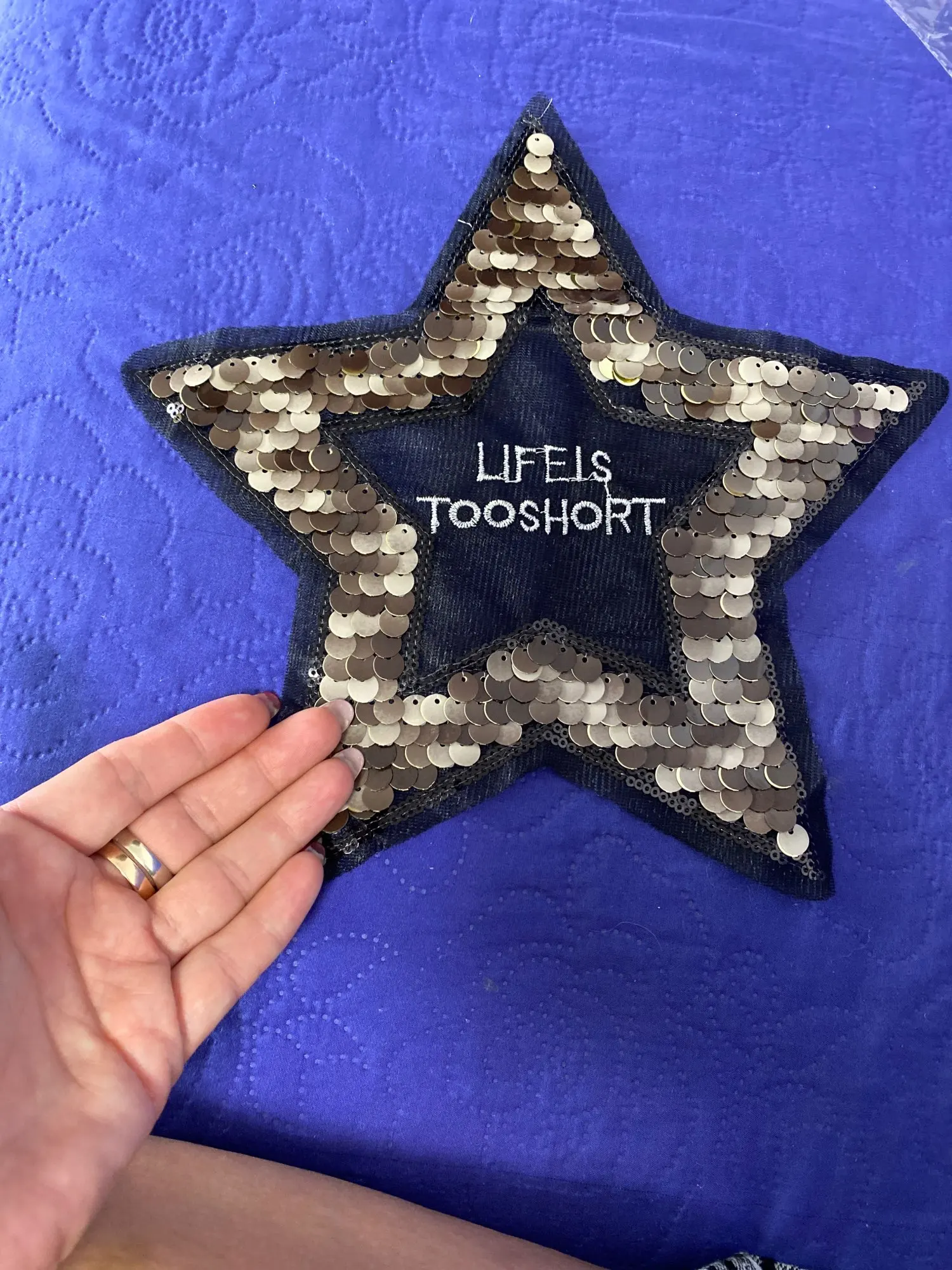 recibido en Mallorca en 33 días es muy bonita, espectacular para una camiseta o un bolso, me encanta, es más grande de lo esperado lo recomiendo