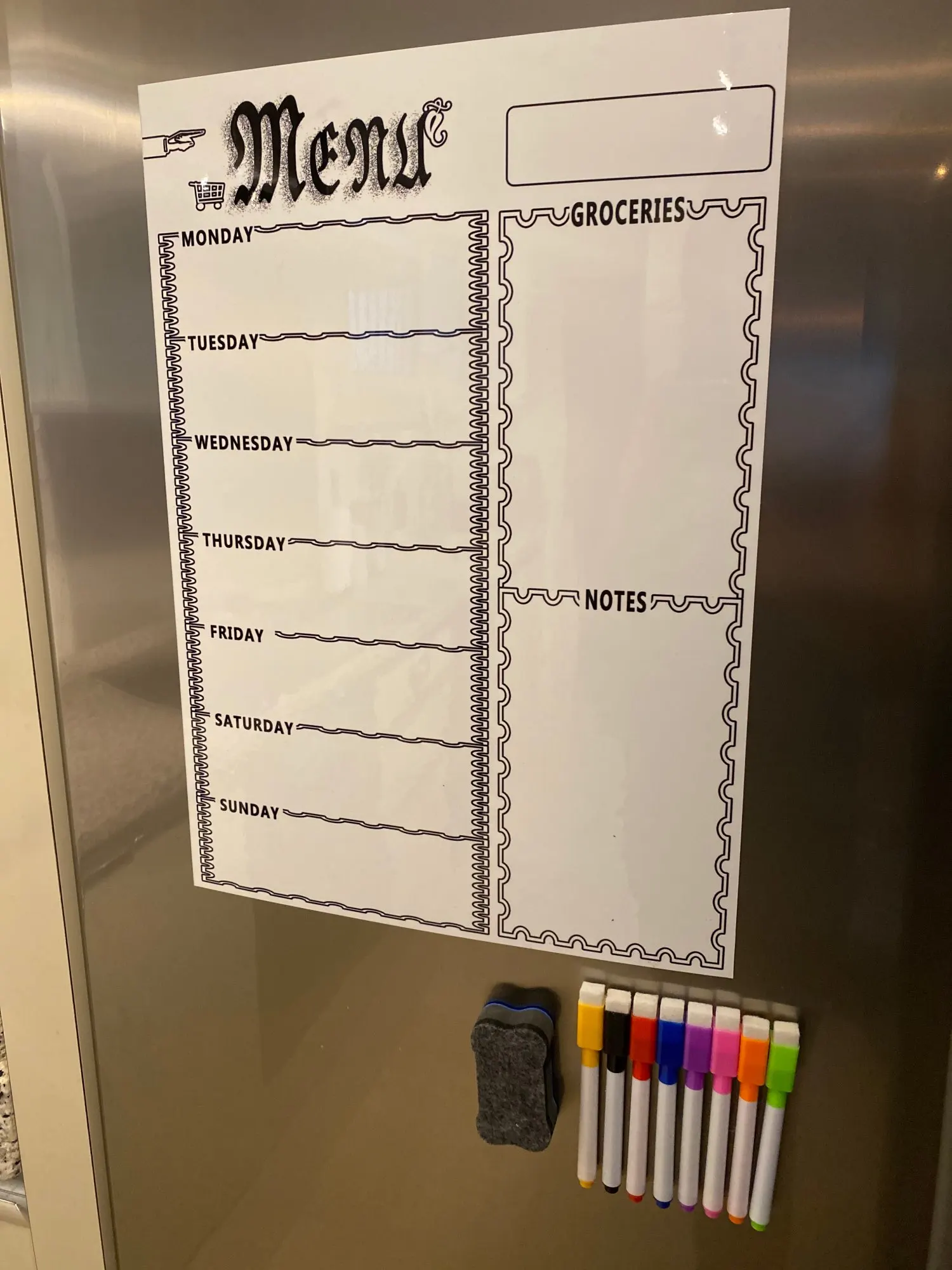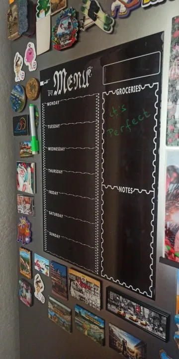Tablero magnético de menú para nevera, pegatinas con rotuladores de tiza de 8 colores para el hogar y la cocina, planificador semanal, calcomanía para refrigerador