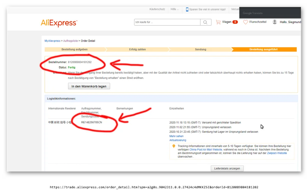 Valoración de Aliexpress: