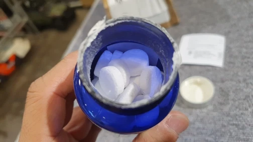 Every 20L water use 1 tablet, 2times per week