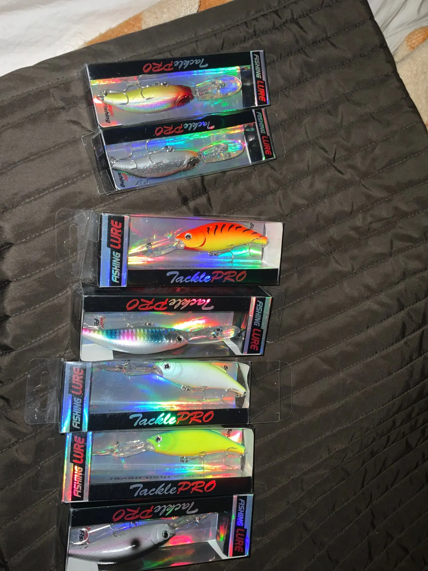 Llegaron en menos de 15 días. Muy rápido. Los peces son de buena calidad. Quizás los anzuelos triples son un poco pequeños para el tamaño del señuelo artificial.
