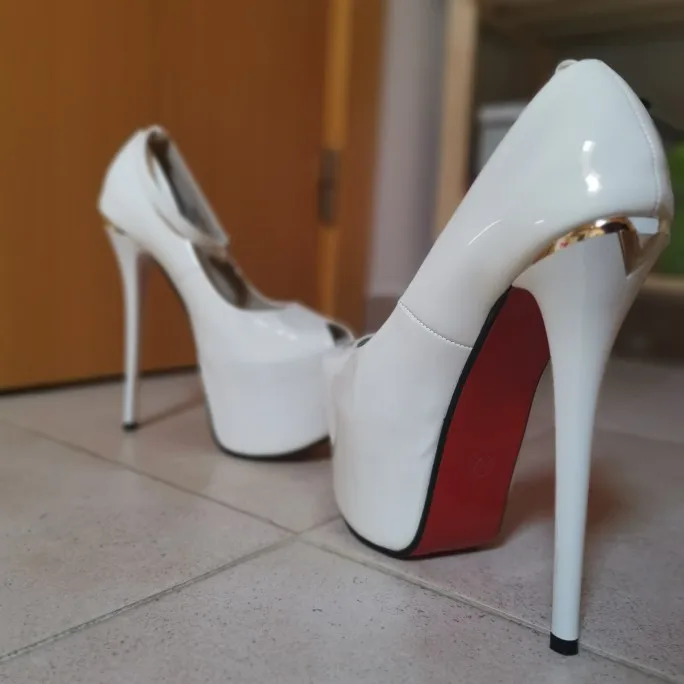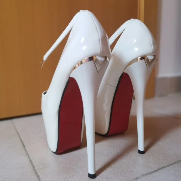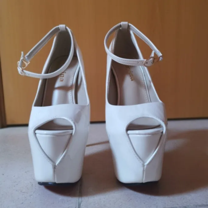 Tacones negros de 17cm para mujer, zapatos de tacón alto sexys, zapatos de plataforma de Punta abierta, zapatos de fiesta nocturna de verano para mujer, tacones blancos