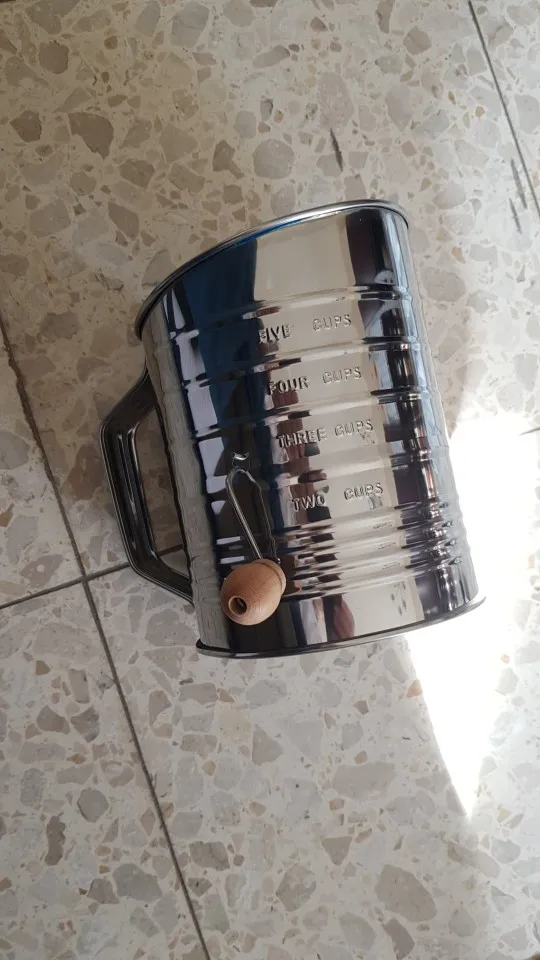 Tamiz de harina de acero inoxidable con manivela, 3 tazas, tamiz de harina e ingredientes secos para hornear, manivela Manual, apto para lavavajillas