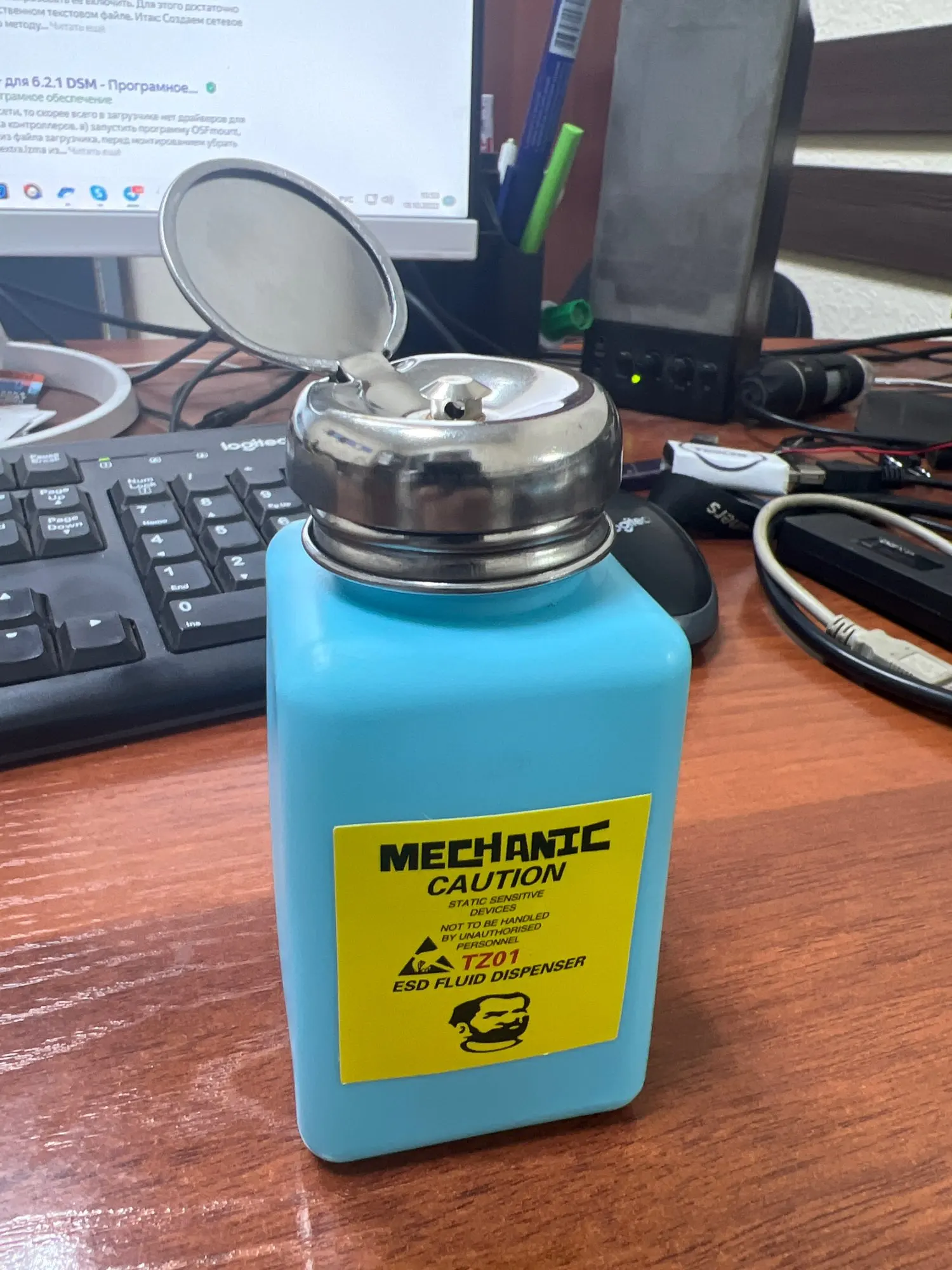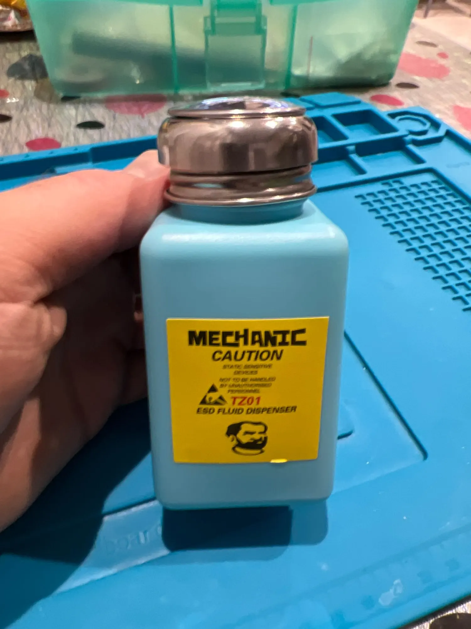Tapón de Metal mecánico de 180ml, botella de Alcohol líquido, prensa de bombeo, dispensador de fluido ESD, contenedor de plástico para limpieza de placa base PCB