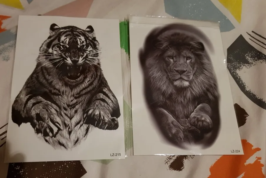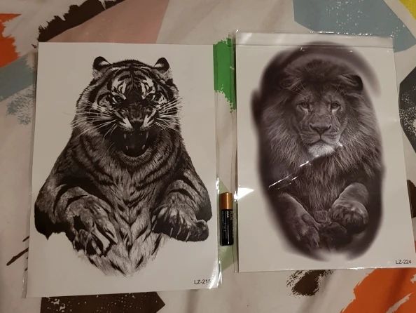 Tatuajes de tigre negro grande para hombres, tatuajes falsos de Lobo, leopardo, resistente al agua, monstruo de La Gran Bestia, cuerpo, piernas y brazos, cubierta de papel temporal
