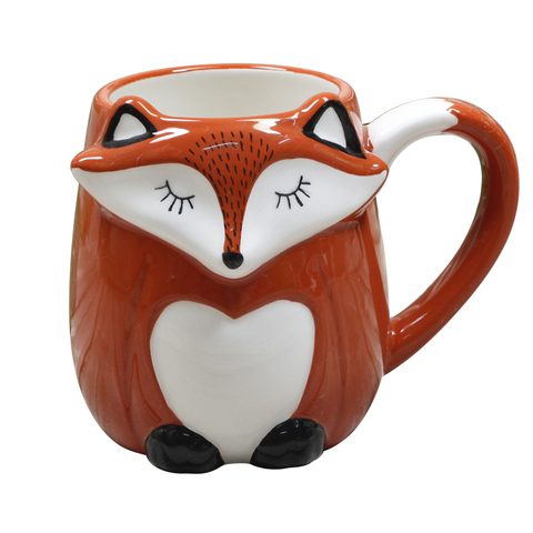 Taza de café creativa de cerámica de 500ML, tazas y vasos de leche para el desayuno con dibujos animados de zorro 3D de gran capacidad