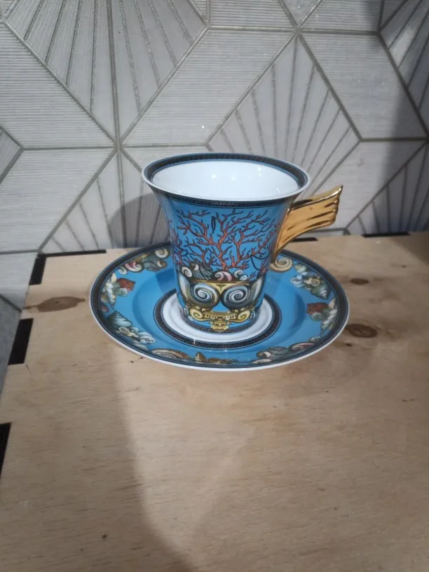 Taza de porcelana de hueso de concha con platillo del mundo del mar, tetera de leche, jarra de azúcar, decoración del hogar estilo europeo, vajilla de cocina, regalos de lujo