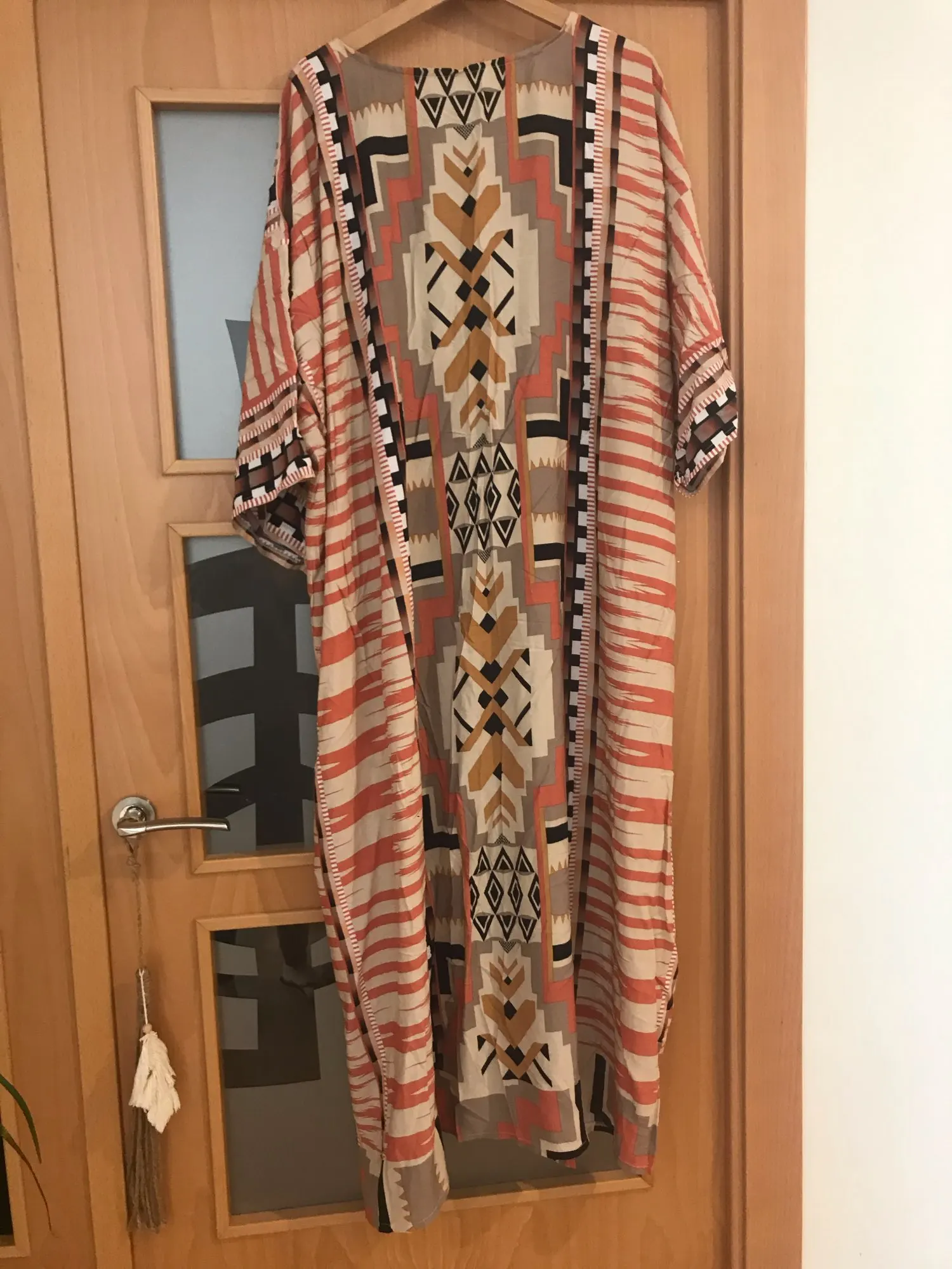 TEELYNN Boho playa traje de algodón naranja de etnia Floral Print Kimono Vestidos de manga larga de las mujeres Top blusas cubierta de talla grande
