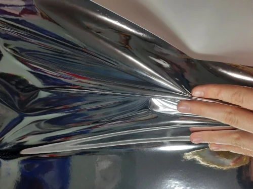Tela de cuero sintético con recubrimiento de espejo plateado para vestido, tejido impermeable para escenario