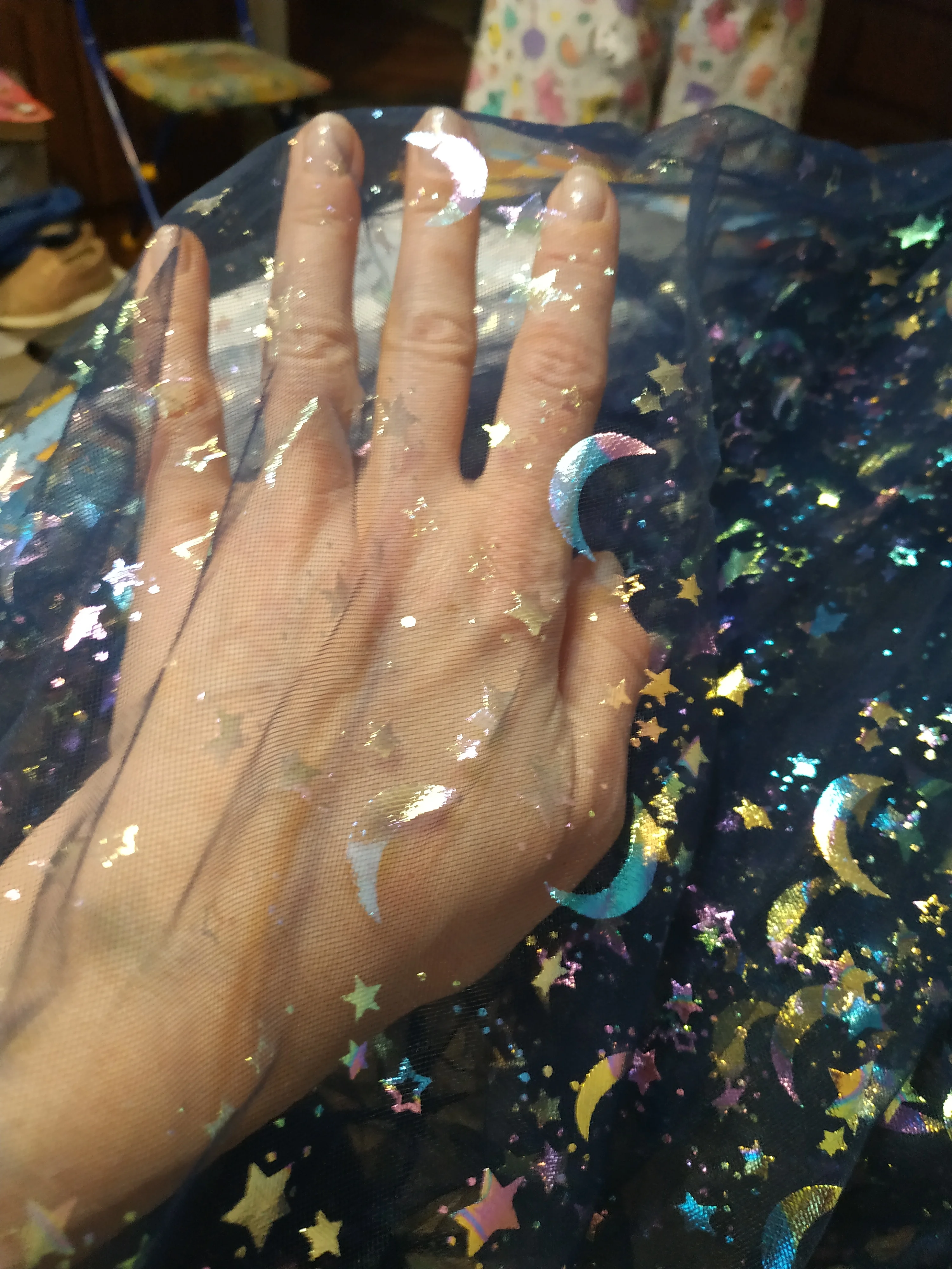 Tela de malla de tul suave brillante, Material de mosaico de estrella, Luna dibujada de encaje para coser muñecas DIY, 100x150cm