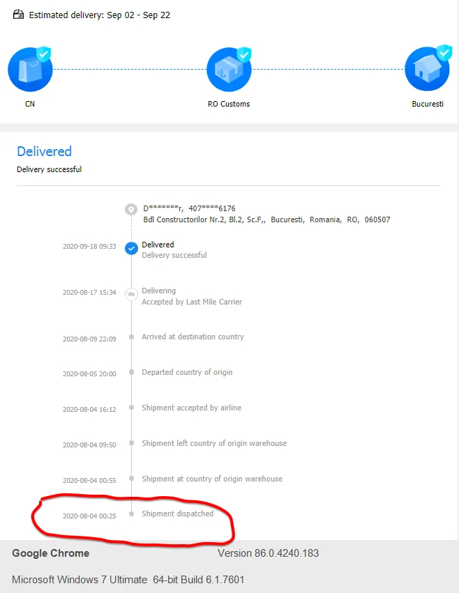 Valoración de Aliexpress: