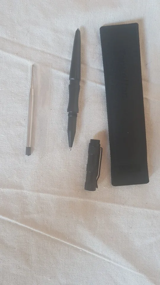 Tiene buena pinta y parece bastante sólido. Además viene con recambio de bolígrafo.
