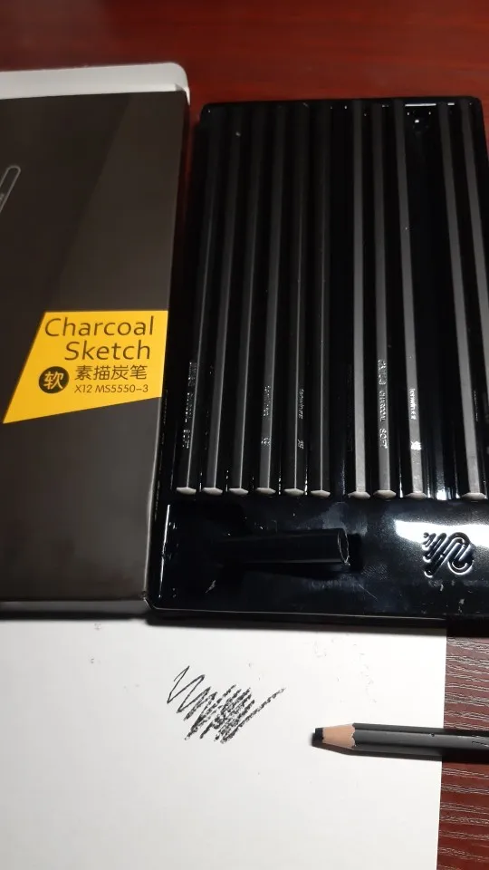 Tenwin-Bolígrafo de carbón para bocetos, herramienta de dibujo suave/Medio/duro, lápices de carbón de madera para suministros de arte de pintura MS5550, 12 Uds.