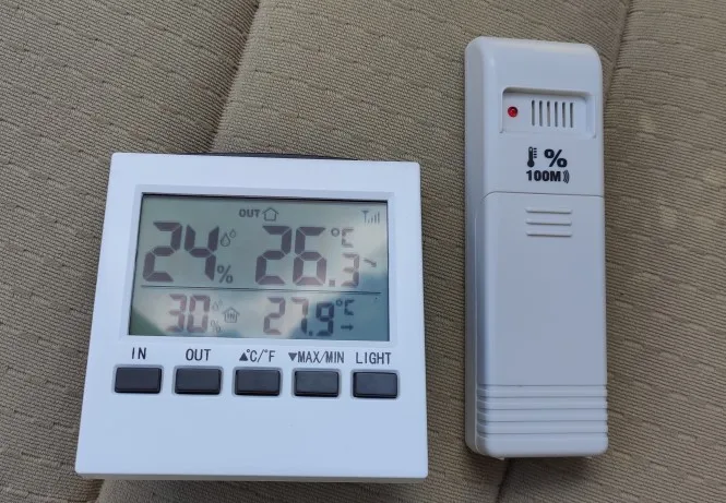 Termómetro Digital inalámbrico LCD para interior/exterior, higrómetro ℃/℉, medidor de humedad de temperatura con pantalla de Valor Mínimo máxima transmisor