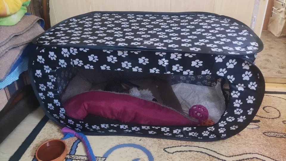 Tienda de campaña plegable portátil para mascotas, jaula de viaje Rectangular para gatos y perros, corralito para cachorros al aire libre de 87CM