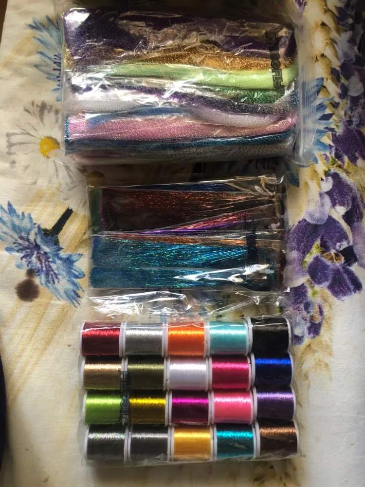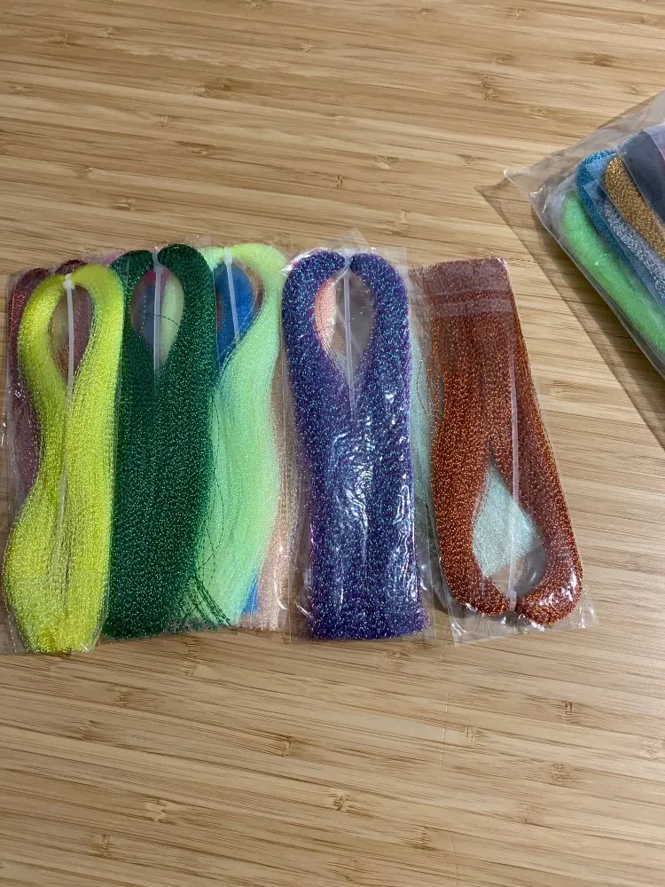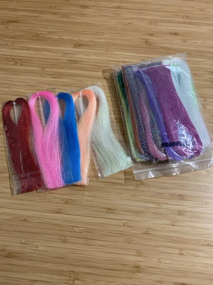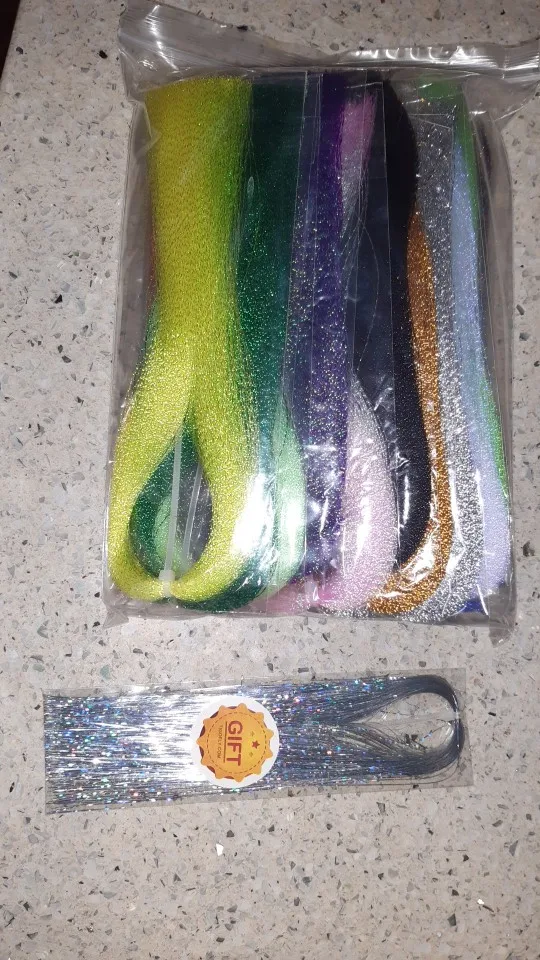 Tigofly 22 colores cristal Flash holográfico Tinsel Krystal Flashabou Sparkle Dry Streamer Fly Fishing atar materiales de cuerda