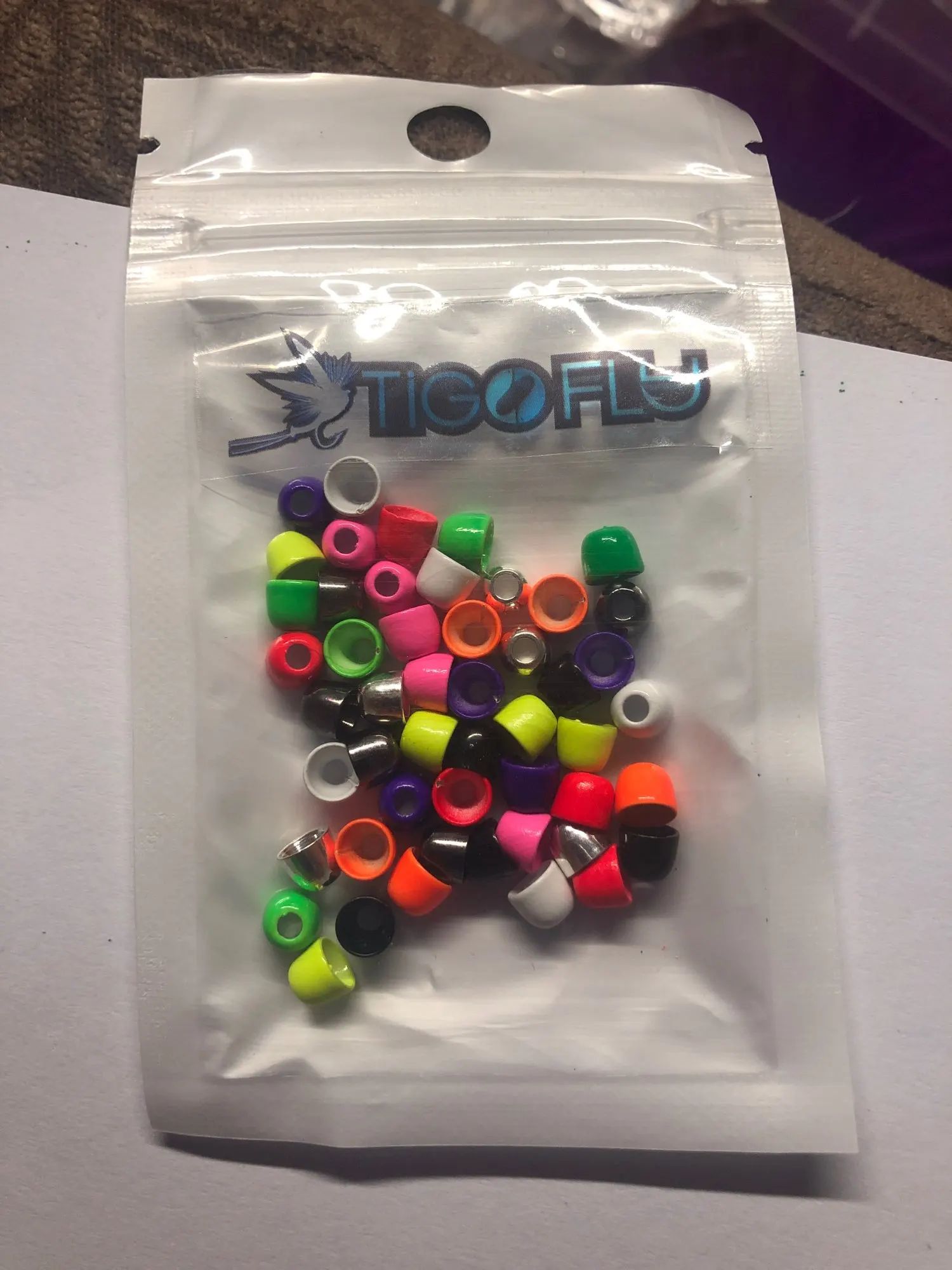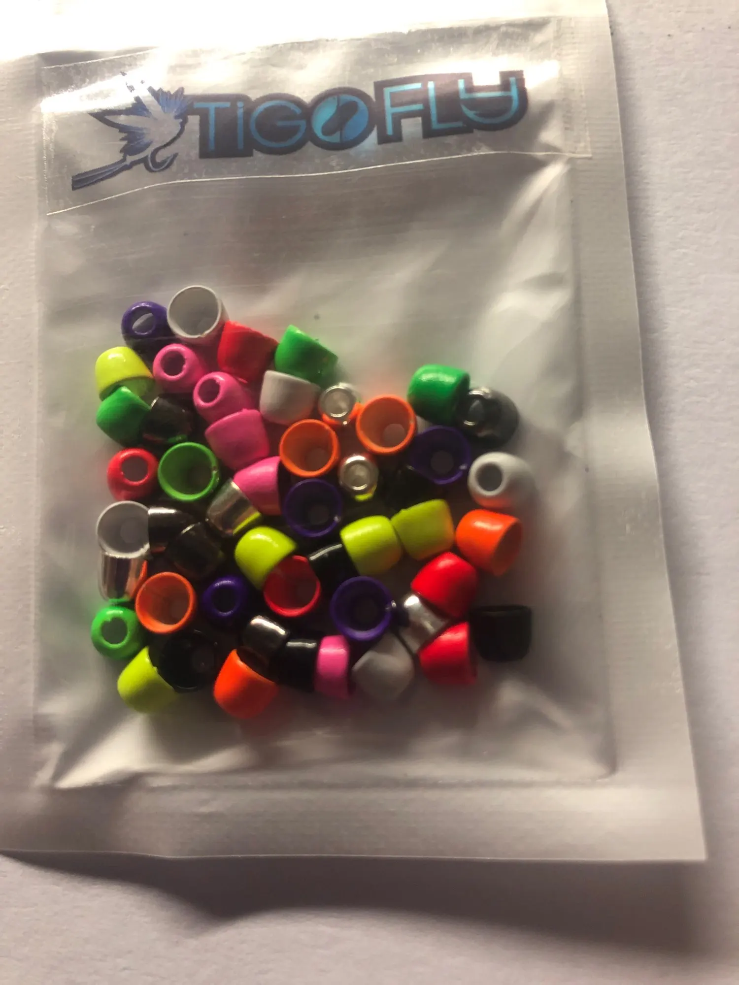 Tigofly 50 unids/lote 10 colores cobre cabeza de cono volar atando cuentas peso Ninfa la plantilla tubo volar atar materiales 5,1mm X 4,1mm X 1,9mm