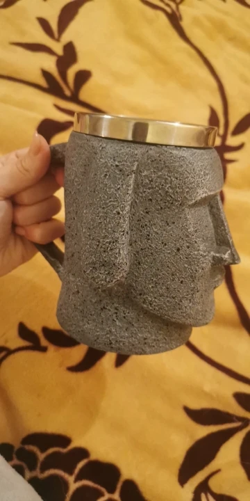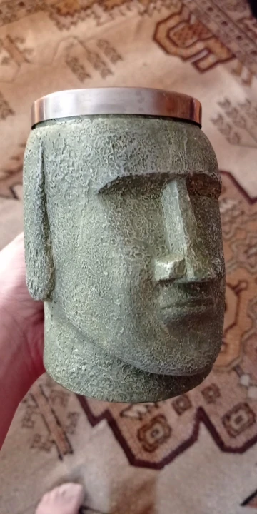 Tiki-taza marrón de Islander de Pascua con abrelatas, estatua de piedra polinesiana, jarra de café, cerveza, regalo para amantes de la Isla de Pascua, 600ml