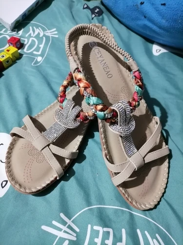 TIMETANG-Sandalias bohemias informales para mujer, chanclas sexys estilo gladiador, planas, para playa y para verano