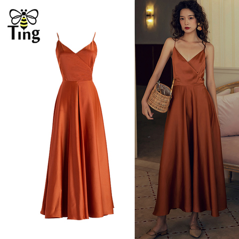 Tingfly verano Correa vestido Boho sin mangas Sexy sin espalda Bowknot Midi largo elegante satén Vestidos de fiesta de playa Vestidos trajes de México