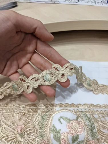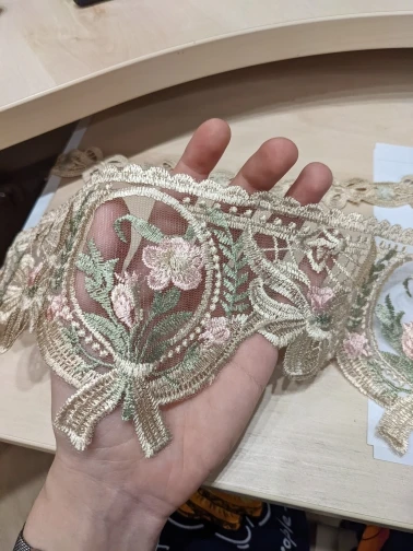 Tira de flores bordadas, cintas para tapicería, sofá, cortina, adornos, vestidos, apliques, Beige, 12 cm, 3 cm, 1 yardas, nuevo