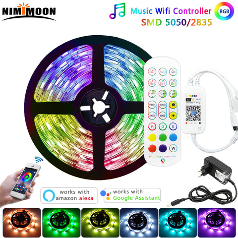 Tiras de luces Led inteligentes RGB 5050, música, Wifi, Control de música de 24 teclas, voz, Google, Alexa, decoración del hogar, impermeable para habitación de Navidad