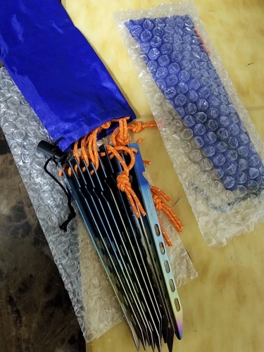 Tito titanio estaca 6 unids/lote titanio colorido en forma de V viento al aire libre camping Tent PEG clavo estaca con cuerda al aire libre