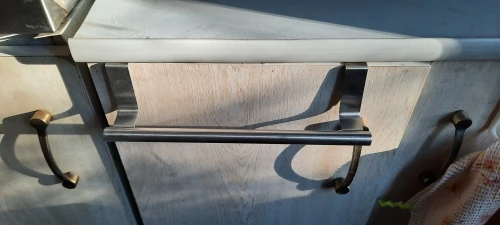 Toallero de 2 tamaños sobre armario de cocina, soporte para colgar en barra, estante para baño, organizador para el hogar, gancho de pared largo, de puerta