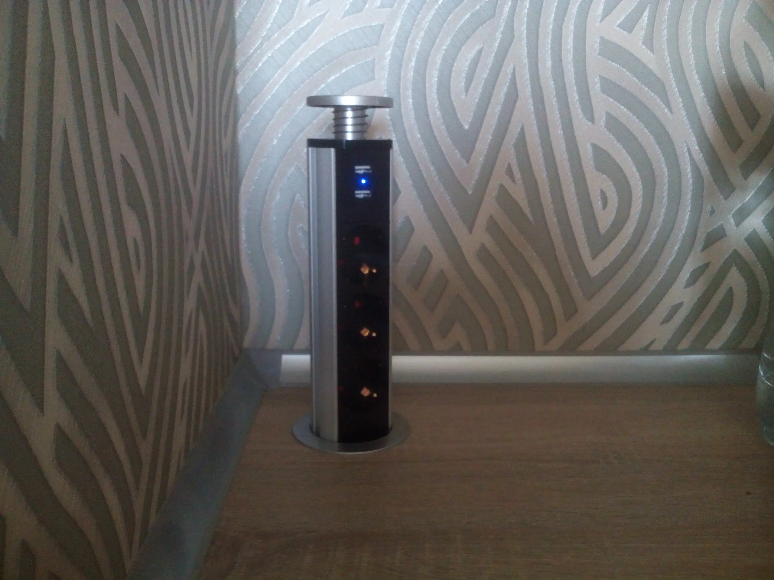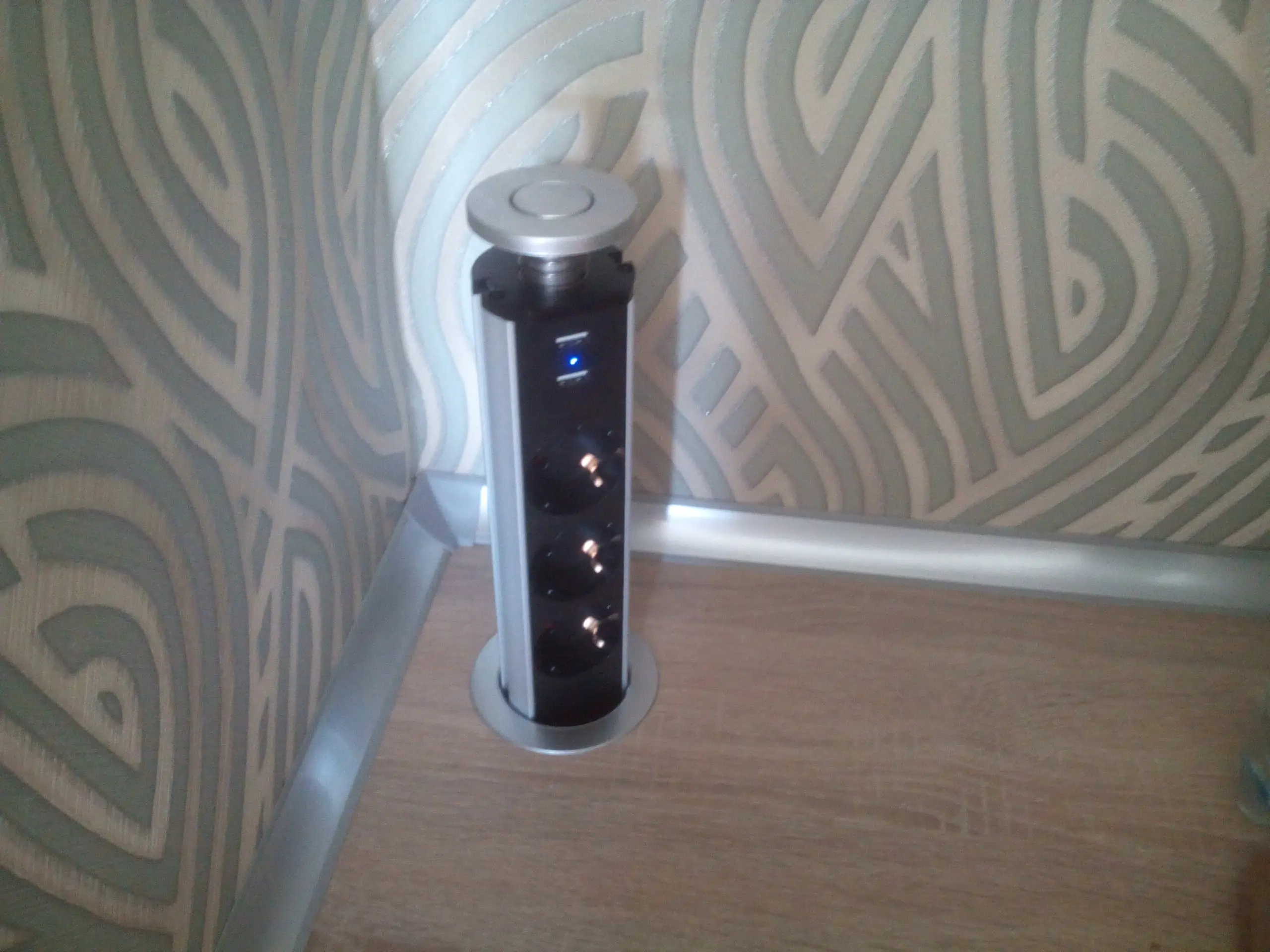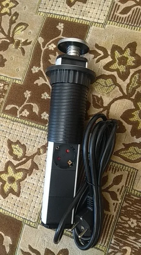 Toma de corriente oculta para mesa de cocina, toma de corriente con 2 puertos USB, estante de aluminio plateado/Negro, 3 enchufes europeos