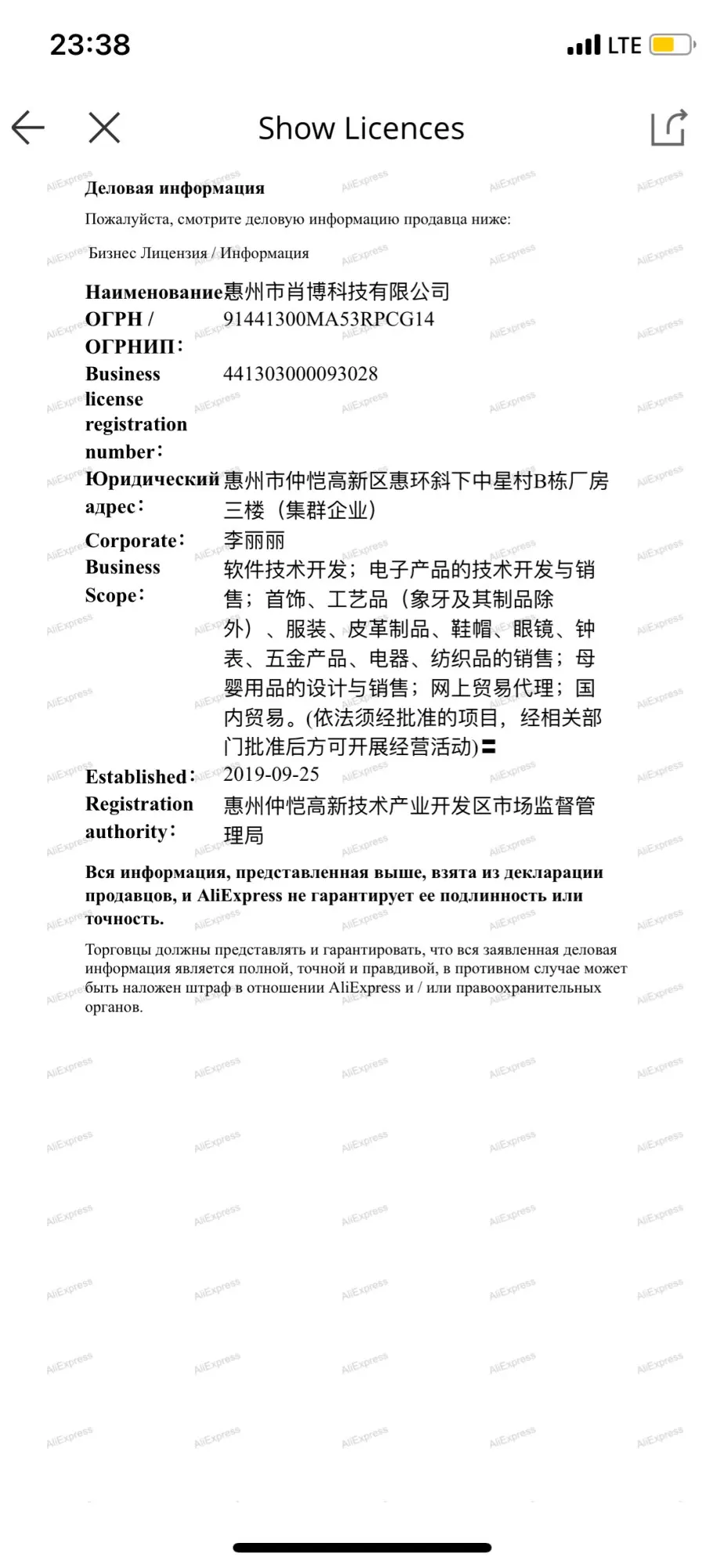 El vendedor ha estado operando en el sitio durante más de tres años.