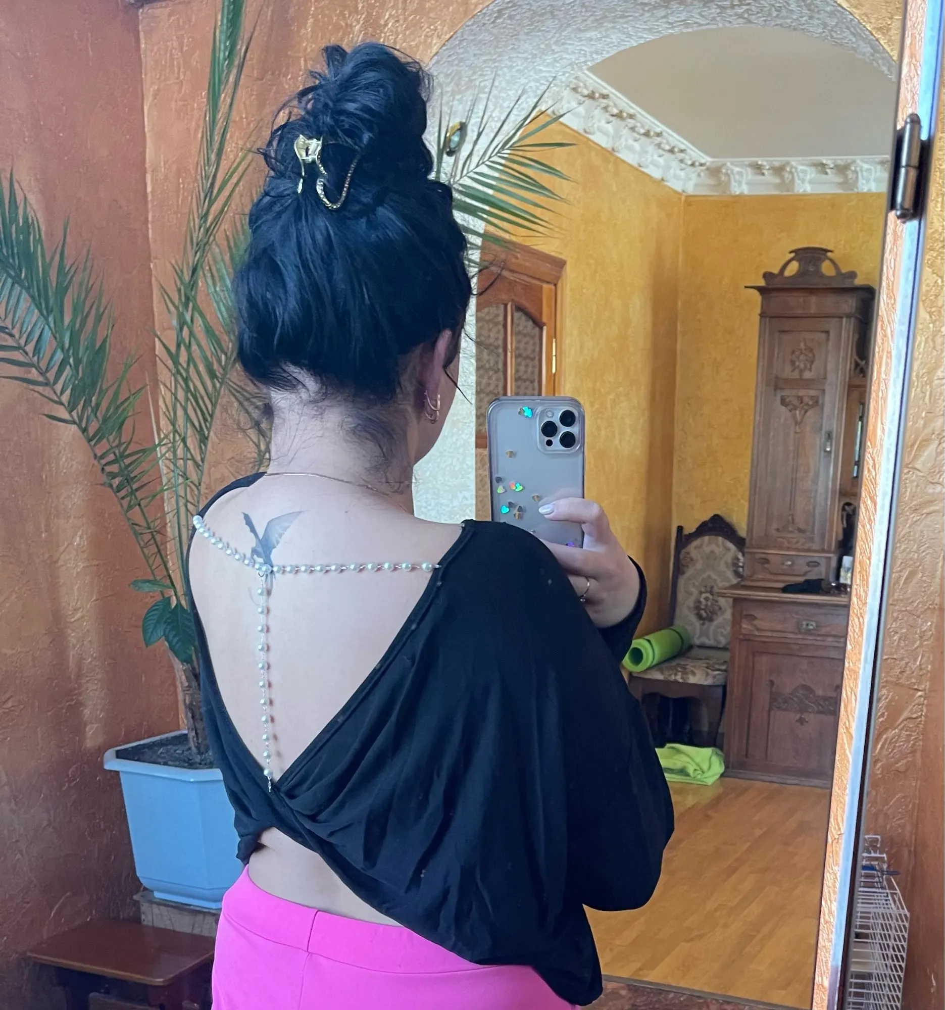 Top de manga larga para mujer, Top Sexy con espalda descubierta y tirantes con cuentas, Top retorcido con espalda descubierta para otoño y primavera 2022