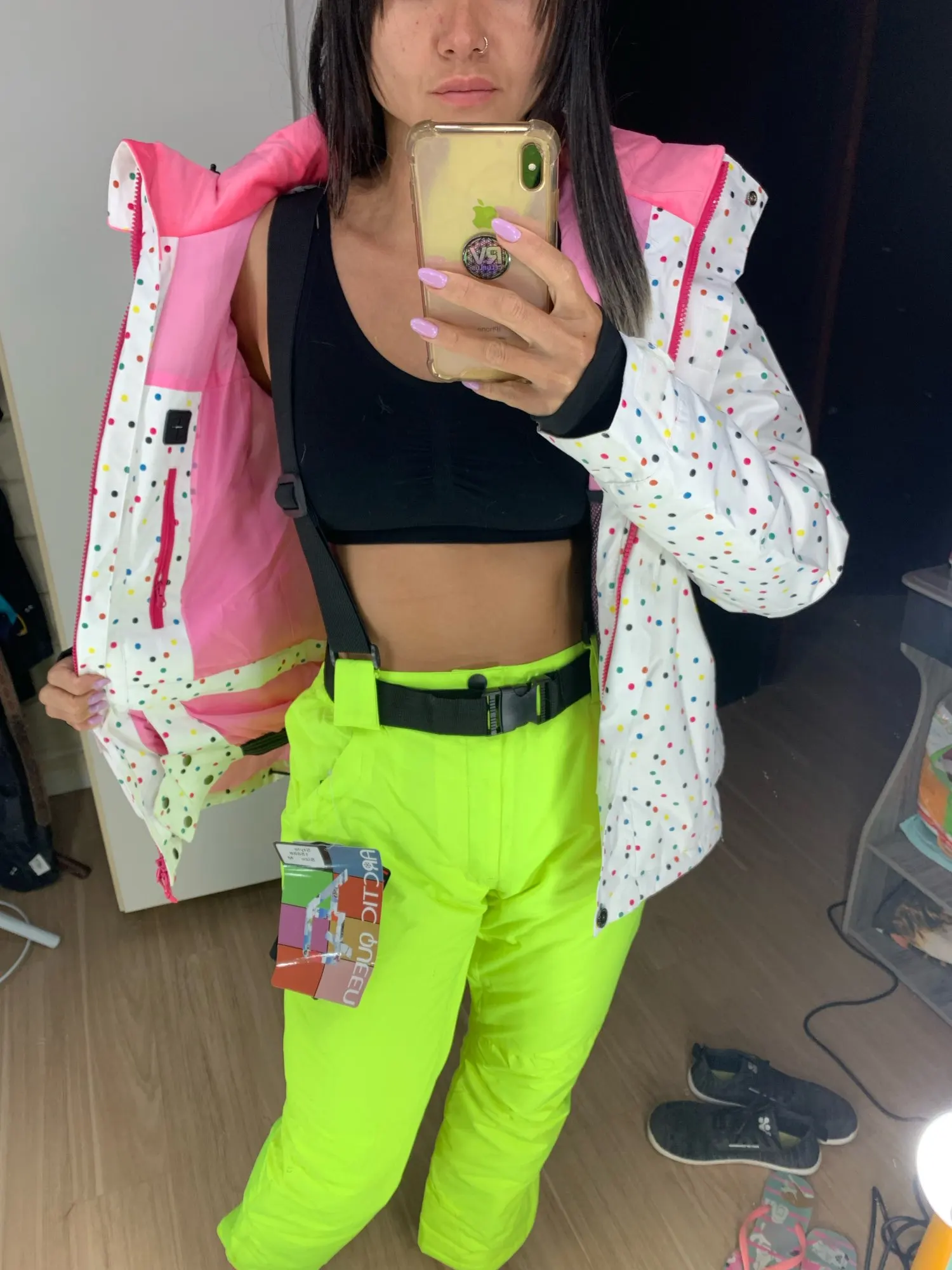 Me encanta, muy calentito aunque aún tengo que probarlo en la sierra pero parece de buena calidad. Mido 169cm y peso 62kg y la L me está perfecto de talla, no queda muy ceñido por lo que no estiliza mucho la figura pero de talla es la mía. Tiene empuñadura para meter la mano en la manga y bolsillo para el forfait así como respiraderos. La única pega que le puedo poner es que los bolsillos por dentro no son de pelito. Muy contenta
