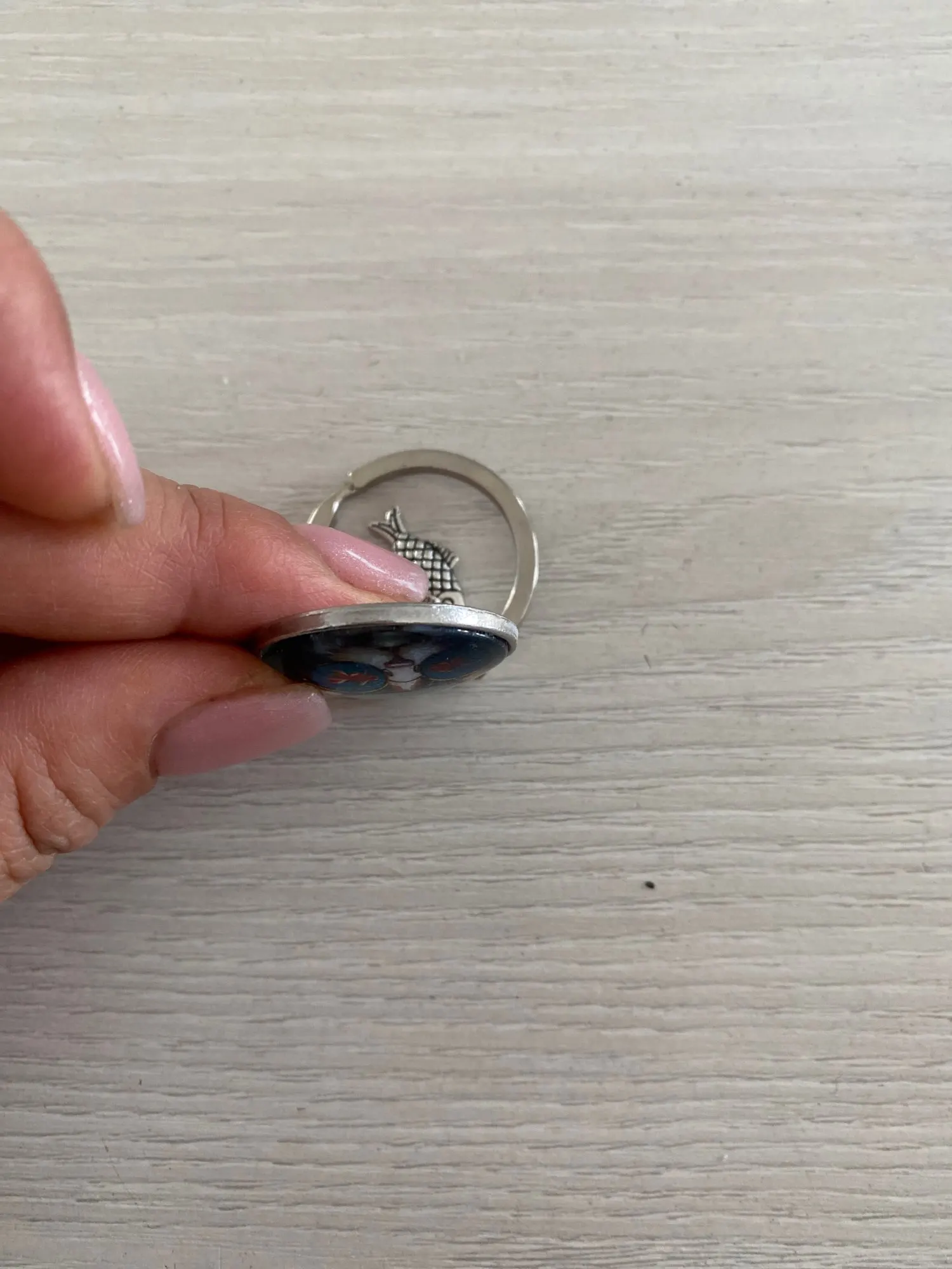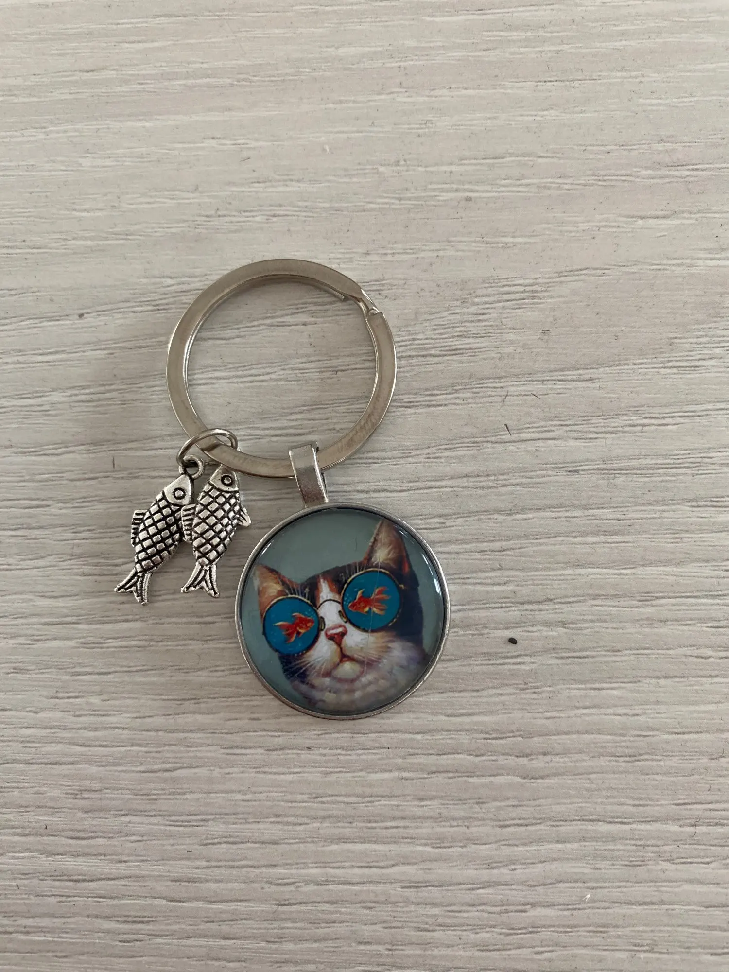 Naughty Cat and Fish Glass Pendent Keychain