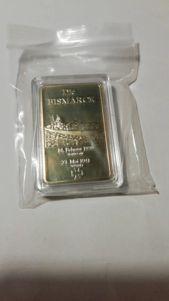 Troquelado alemán Bismarck Battleship, barra de lingote/monedas chapada en oro, 1 onza, de la marina alemana Deutsche, moneda de recuerdo