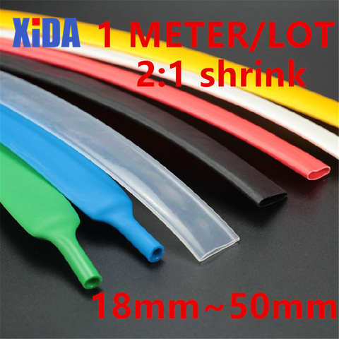 Tubo termocontraíble electrónico de 1 m/lote, envoltura de manga de Tubo Termocontraíble, 7 colores, 18mm/20mm/22mm/25mm/28mm/30mm/35mm/40mm/50mm