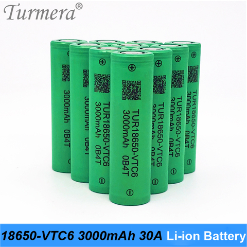Turmera 18650 batería 3000mAh VTC6 30A 3,6 V baterías de litio TUR18650-VTC6 para destornillador eléctrico y cigarrillo Vape Mod uso