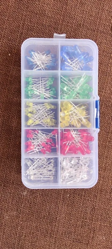 TZT 200 piezas/lote 3MM 5MM Kit Led con caja de colores mezclados rojo verde amarillo azul blanco Diodo Emisor 20 piezas cada nuevo