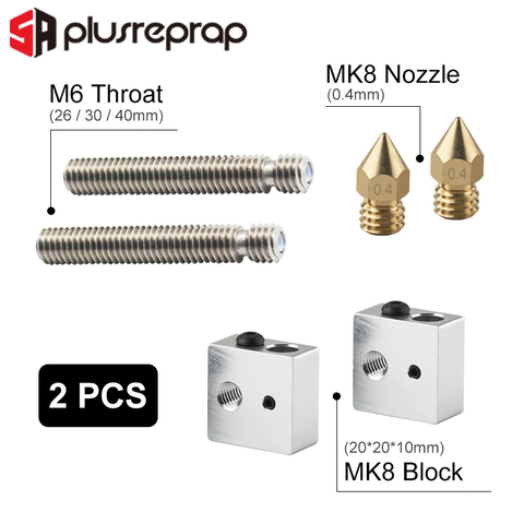 Uds 0,4mm extrusora boquilla + 2 uds 1,75mm M6 garganta + 2 uds calentador de bloque para MK8 Anet A8 de J-La 3D piezas de la impresora