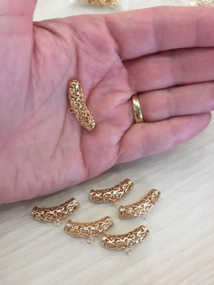 Uds 28x8MM 24K oro champán Color plateado latón nube curvado tubos colgantes pulsera de colgantes conector de alta calidad conclusiones