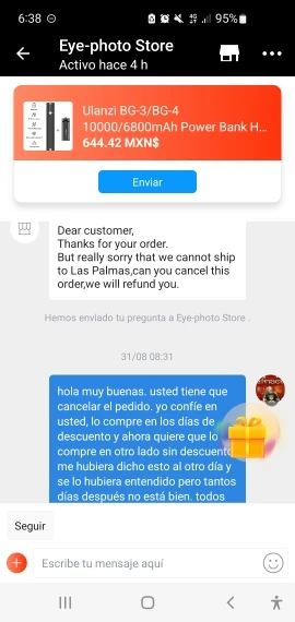 El vendedor realiza los envíos rápidamente.