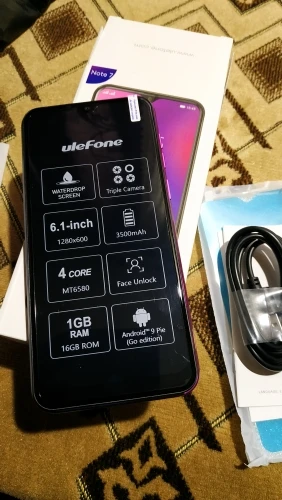 Ulefone Nota 7 Smartphone 6,1 pulgadas 1GB de RAM 16GB ROM MT6580A Quad Core 3500mAh cara de tres cámaras traseras Android GO teléfono móvil