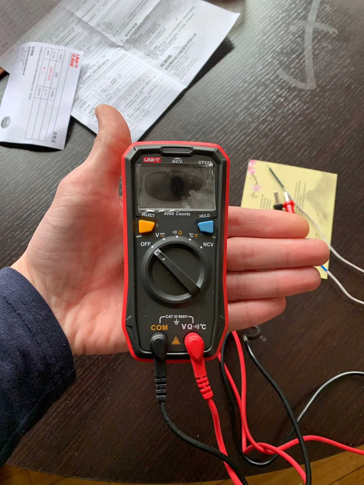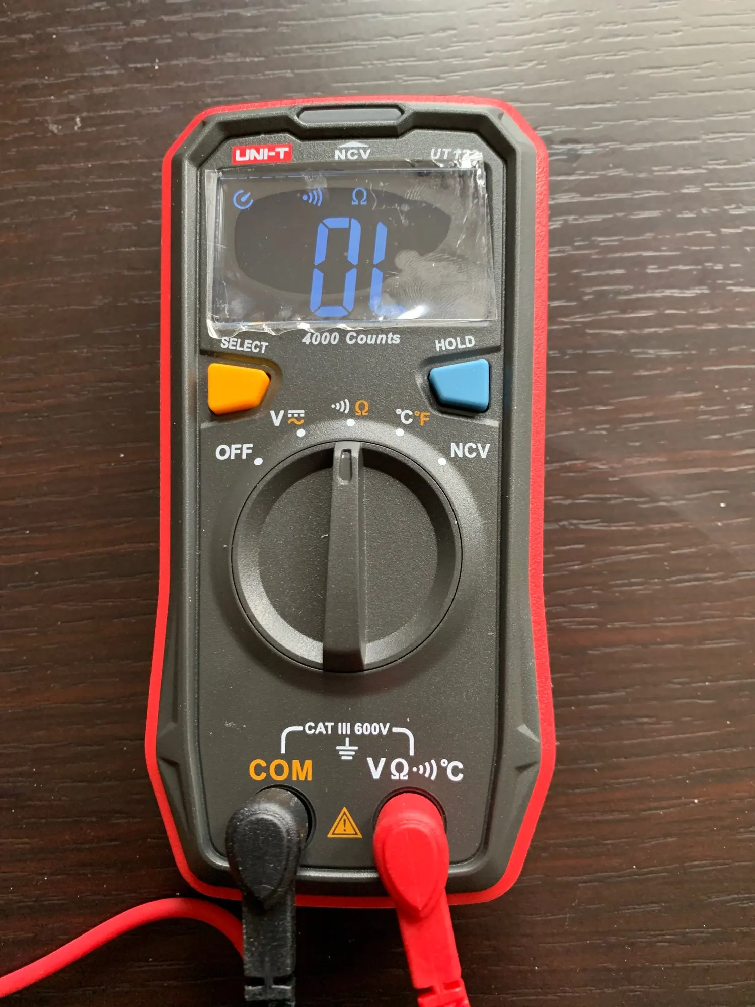 Unidad de UNI-T UT123 Mini multímetro Digital de rango automático de datos de retención de CA CC voltímetro Ohm temperatura NCV/probador de continuidad EBTN pantalla
