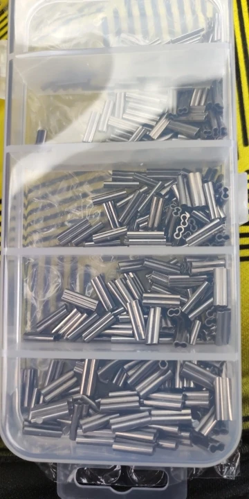 Unids/caja de fundas de crimpado de un/doble cilindro, alambre de pesca, líder, conectores de tubo de cobre redondo, tubos de cobre mezclados, 300-500